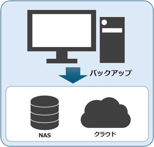 バックアップは異なるタイプのメディアに保存します。例えば、バックアップ先の一つにNASや外付けHDDを利用したならば、もう一方はクラウドストレージに保存するなど、物理的に異なる記録メディアにバックアップを取得します。これにより、突然メディアが故障してもデータを保持することができます。
